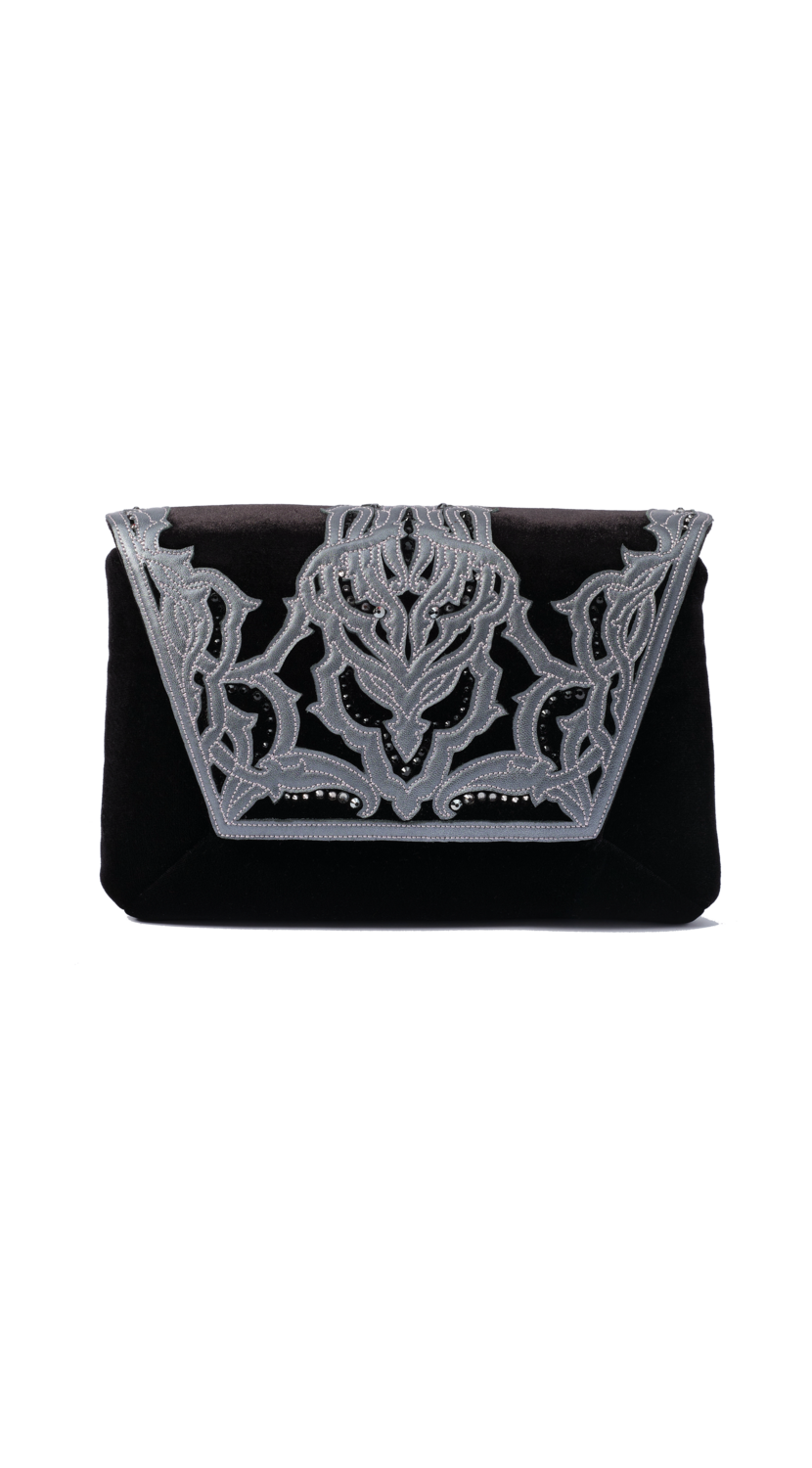 Сумка из шелкового бархата, с кожаной аппликацией Закрывается на магнитных кнопках.
