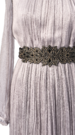Пояс изготовлен из шелкового бархата, с кожаной аппликацией и украшен стразами Сваровски. Сзади застегивается на металлический крючок.